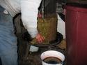 Joska haalt de geperste druiven er uit voor de Torkoly (grappa)