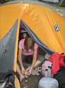 Andrea fixing her feet